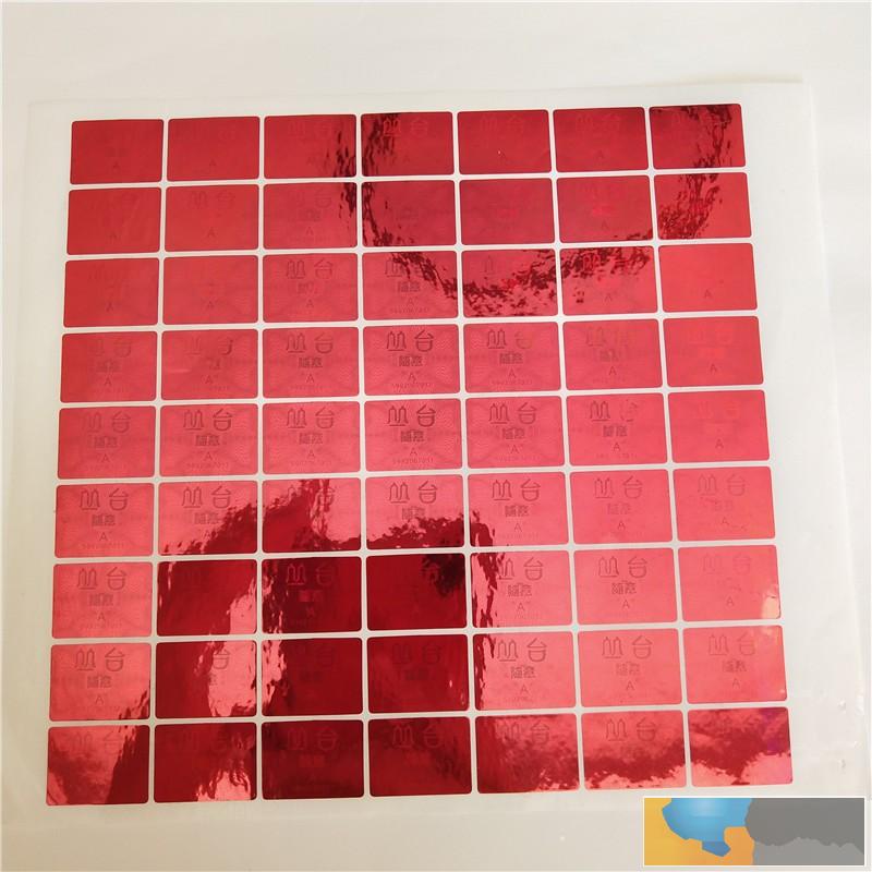激光防伪标签材质★激光防伪标签一次性材质:防伪标签贴上去后只能撕下一层透明薄膜,无法重复使用,具有很好的防转移效果。★激光永久性材质:标签贴上去后可完整撕下来重复使用★普通版:利用激光拍照技术制作,色彩绚丽,亮度高,从不同角度可以看到激光颜色的各种变化。与光刻版对比,标签表面看上去是平面,没有折射效果,图像为静态★光刻版:利用激光点阵技术制作,色彩绚丽,亮度高,动感强烈。从不同角度可以看到激光颜色的各种变化。激光防伪标签表面看上去是立体的,有强烈的折射效果,图像是动态的。常用的常规颜色有金色、银色、蓝色、红色(单色)、绿色。激光标相对不干胶,美观大方,光滑适度。但防伪效果不如不干胶。且增加其他防伪技术,所增加的成本比较大。建议亲们,如果不是特殊的需要美观大方,而是更看重于防伪功能的话,可以选择不干胶防伪标签。同样的防伪技术,不干胶的成本相对较低。刮开激光防伪标签涂层,可以看到由12-20位数字组成的一串密码,拨打免费400电话,按照语音提示依次输入密码,便可查询产品真伪。将密码编辑成短信,发送至指定号码,会收到一条含有产品真伪信息的短信;登陆指定网站,依次输入密码,查询产品真伪。揭开激光防伪标签表层,可以看到由20位数字组成的一组密码,拨打免费400电话,按照语音提示依次输入密码,便可查询产品真伪。将密码编辑短信,发送至指定号码,会收到一条含有产品真伪信息的短信。登陆指定网站,依次输入密码,查询产品真伪激光双通道防伪标签,是变换标签角度,可以在不同角度看到同一位置上的不同内容,如在某一角度上看到的内容是A,在另一角度上看到的内容是B,看到A的同时看不到B,看到B的同时看不到A。激光加密防伪标签,是将预先设定好的文字、图案、标志等内容隐藏于激光标签的某一位置,肉眼无法看到,只有通过特制的解码片才可以看到。